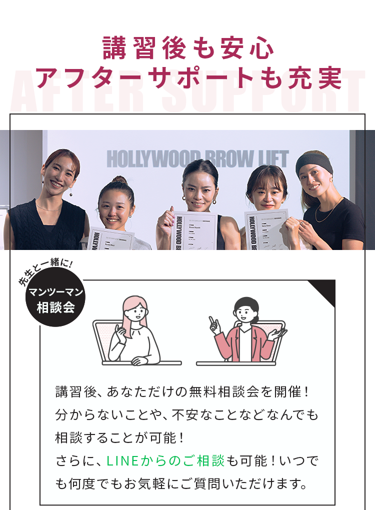 受講者の声 お客様に泣いて喜んでいただけました 同時施術で利益が2倍になりました 美容院こそ導入すべきメニューです 男女に関係なく技術を磨ける場所です